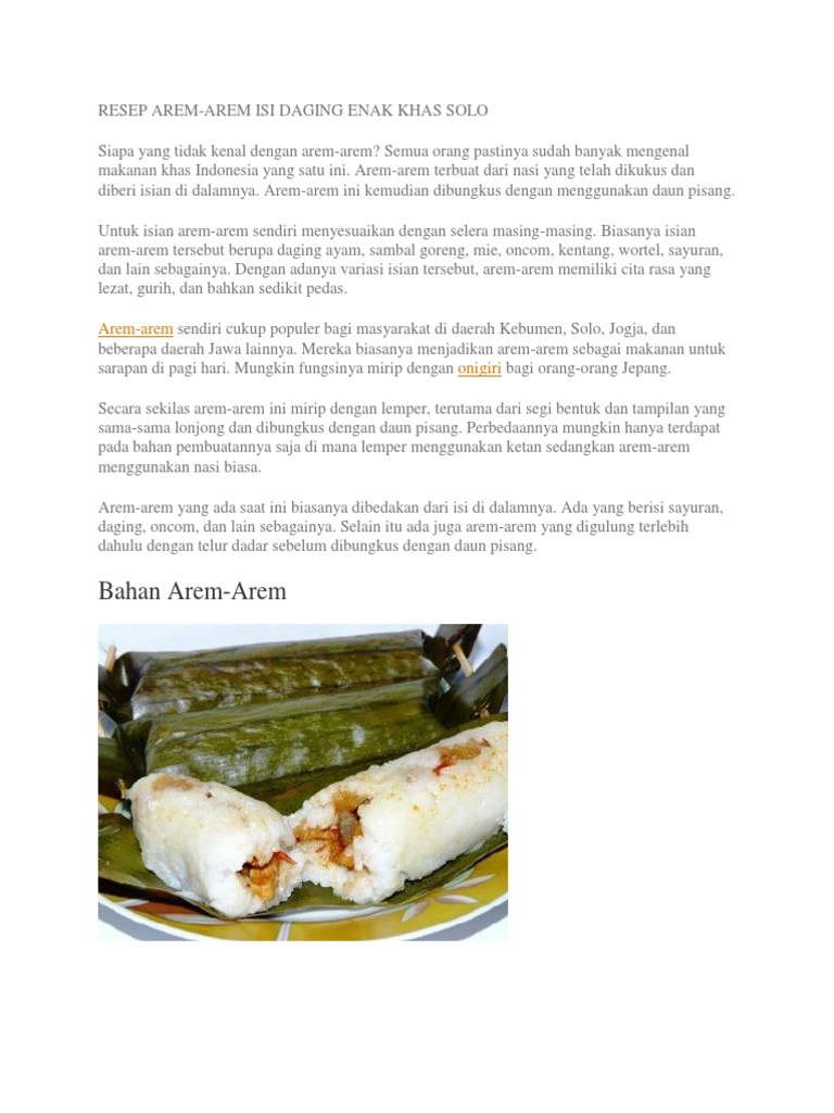 Resep Arem from imgv2-2-f.scribdassets.com The most common meat used in tinorangsak is pork. Siomai dibuat berbentuk silinder, dan di atasnya diberi hiasan seperti telur kepiting, parutan wortel, atau kacang polong. Resep masakan kreatif #pekanposbar #cookpadcommunity_cilegon #cookpadcommunity_banten Dalam resep masakan cina, siomai adalah daging babi cincang yang dibungkus kulit yang tipis dari tepung terigu. Ayam goreng literally means fried chicken in malay (including both indonesian and malaysian standards) and also in many indonesian regional languages (e.g. Walaupun demikian, siomai juga dibuat dari udang, daging kepiting, atau daging sapi. May 31, 2021 · delicious cornbread upside down casserole in 17 minutes. Tinorangsak or tinoransak is an indonesian hot and spicy meat dish that uses specific bumbu (spice mixture) found in manado cuisine of north sulawesi, indonesia.